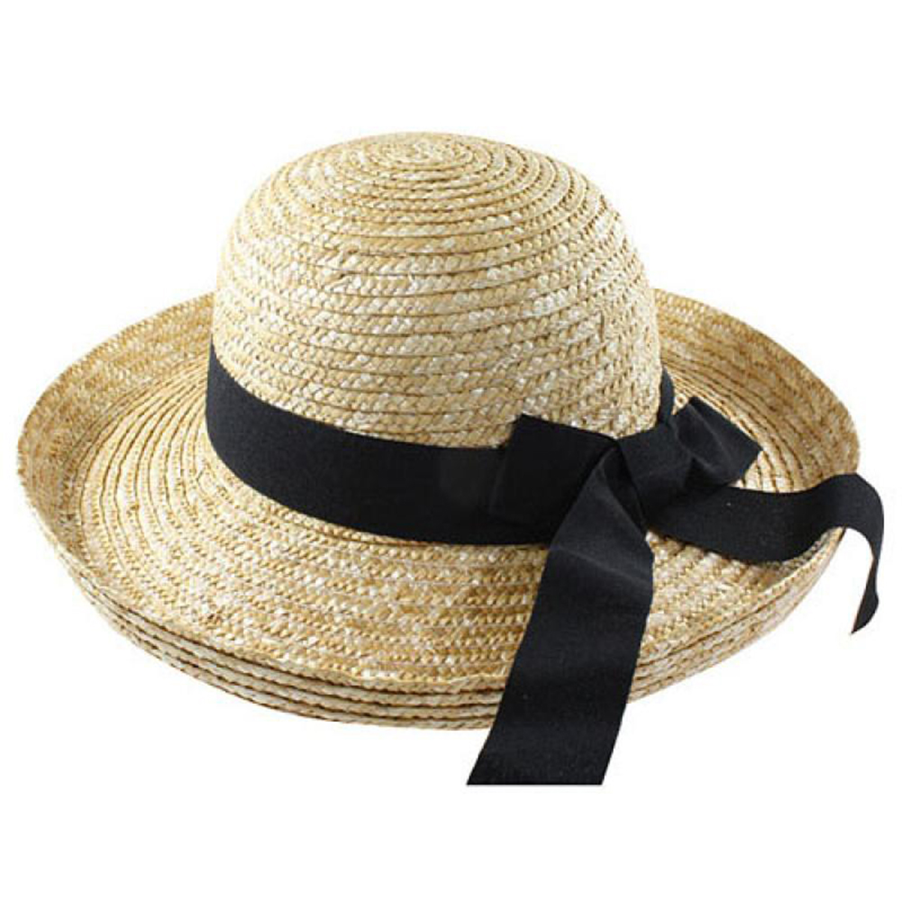 LADIES UP BRIM WHEAT BRAID HAT WITH BLACK TRIM
