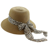 Ladies Sewn Braid 3.5" Brim Hat With Leopard Bow