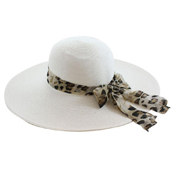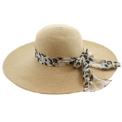 Ladies Sewn Braid 5" Wide Brim Hat with Leopard Scarf